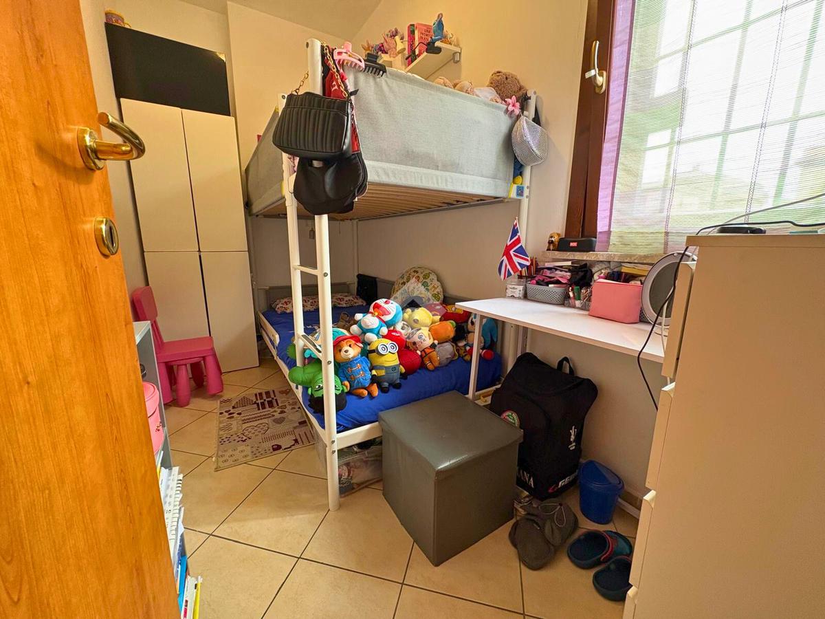 La zona notte è composta da una camera matrimoniale, una cameretta e un bagno finestrato con vasca, progettati per garantire comfort e funzionalità.